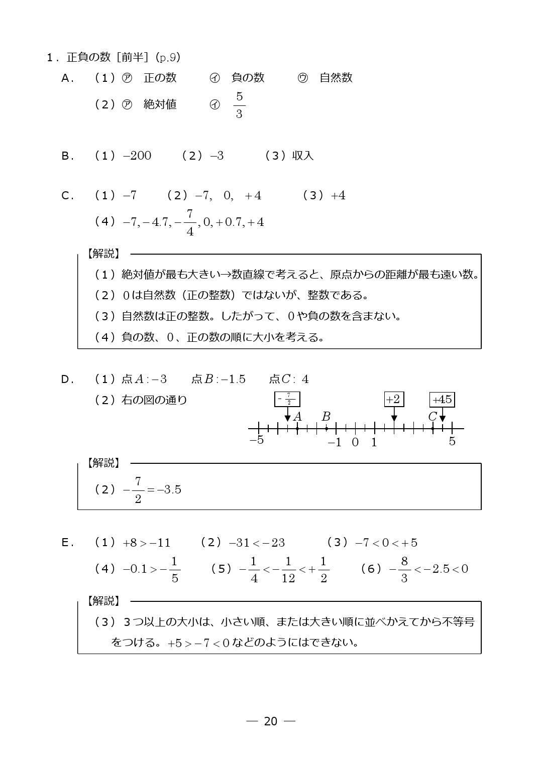 定期テスト対策テキスト 中1 正負の数(前半:四則計算まで)