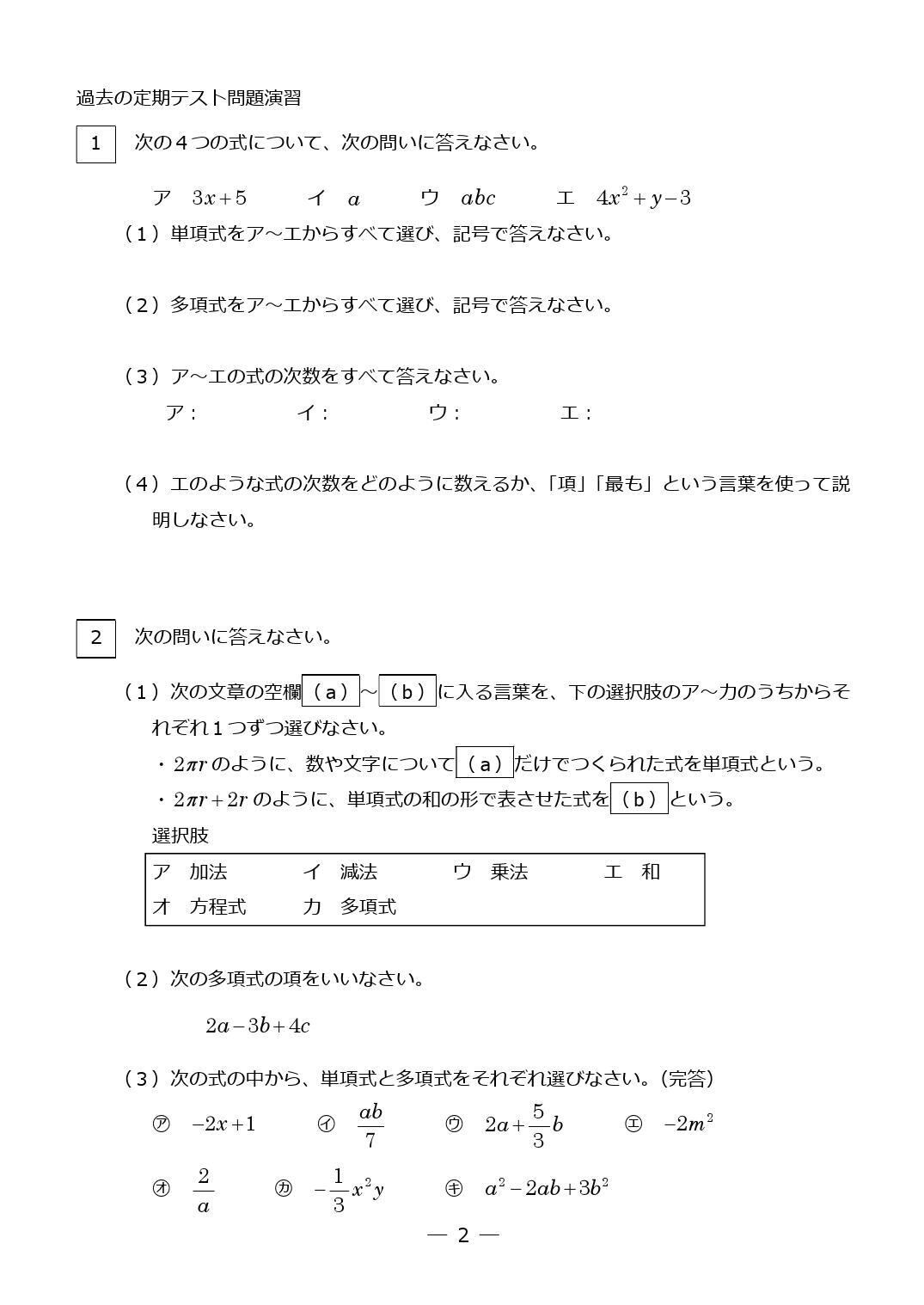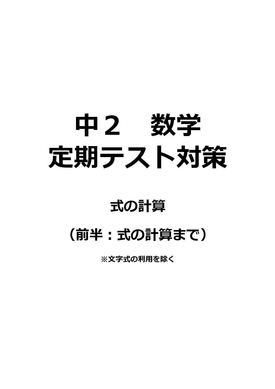 定期テスト対策テキスト 中2 式の計算(前半 計算問題)
